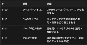Claude Codeに以下のようなChrome拡張機能を作ってほしい。