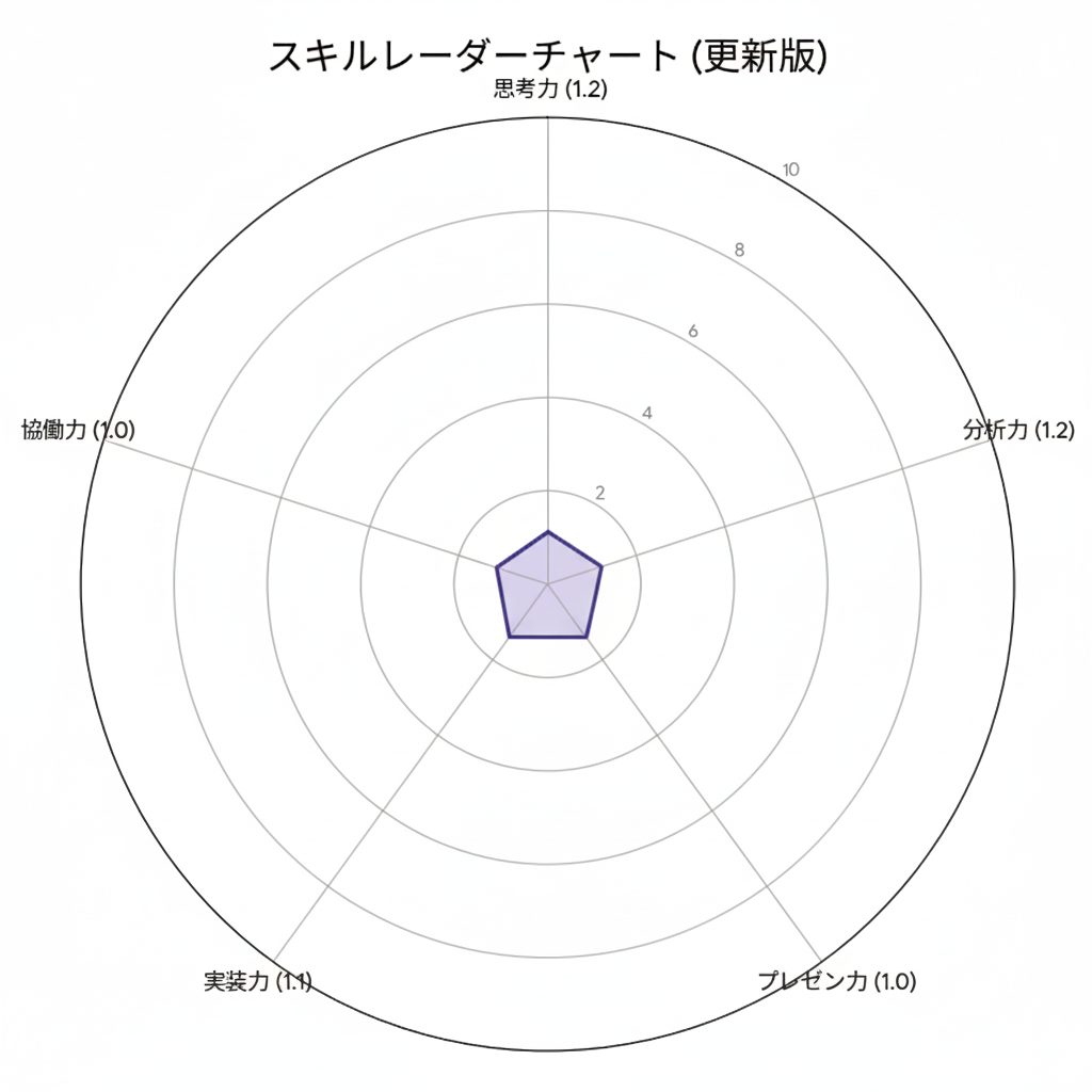 分析力のみ0.1伸ばしました。この知識を実践で活用し、実装力も磨いていきたいと思います!