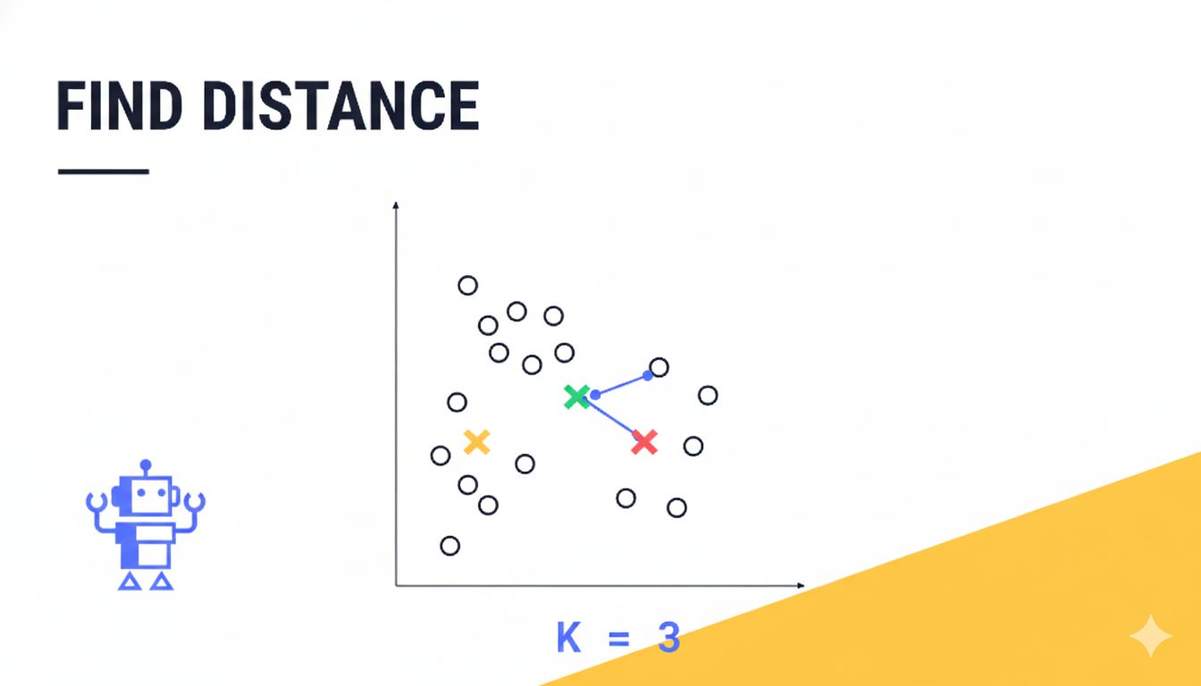 AIは、データ同士がどれくらい似ているかを「距離」という指標で測ります。物理的な距離と同じように、データの特徴が近いほど「距離が近く」、特徴が遠いほど「距離が遠い」と判断します。