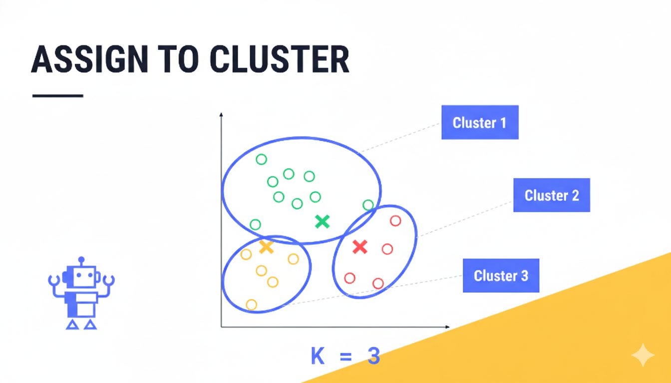 では、どうやってAIは正解なしにグループ分けをするのでしょうか?代表的なアルゴリズムである「k-means法」(これは中心ベースの手法と呼ばれ、他にも階層的クラスタリングや密度ベースのDBSCANといった様々なアルゴリズムが存在します)の簡単な仕組みを見てみましょう。