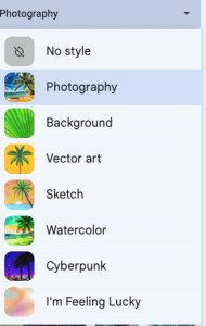 Duet AI for Google Workspace を導入していると画面の右側に「Help me visualize」があるのでここにプロンプトを打ち込むことで画像が生成されます。