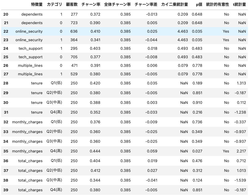 オンラインセキュリティ利用顧客の離脱率が有意に低い結果は、付加サービスによるロックイン効果を示唆しています。