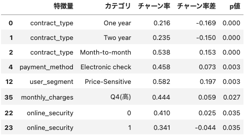 - Price-Sensitiveセグメント: チャーン確率50%超で長期契約割引オファーを自動配信