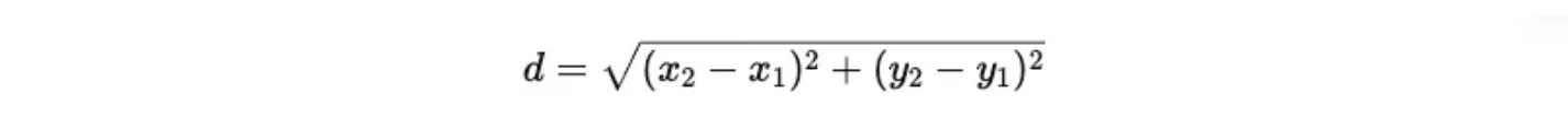 2点間の距離は以下の式で求めます: